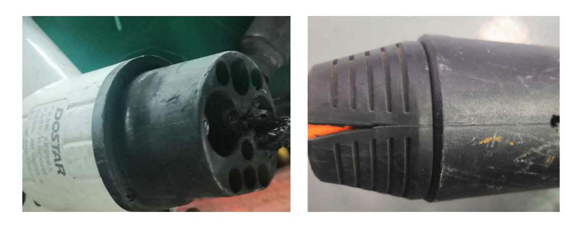 2)槍頭DC+黑色絕緣帽脫落、變形;